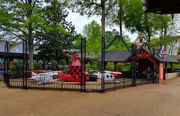 Roto Baron is a typical rotating "Red Baron" airplane ride.