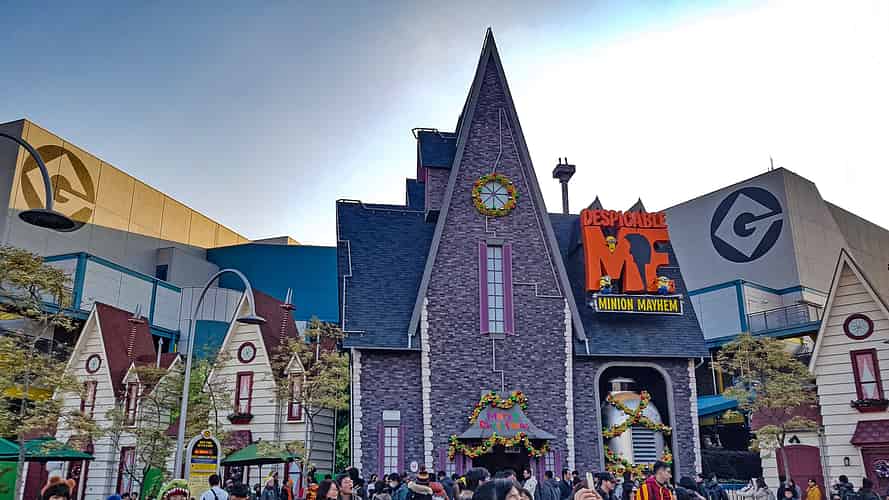 Despicable Me Minion Mayhem is a large format simulator ride that re-used many parts of the Back to the Future ride which preceded it.