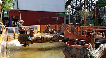 Dillen is a Zierer jetski ride, which has guests standing in pods being swung around over a pool of water. Equipped with a rudder, you can make it follow a wide arc or a narrow one.