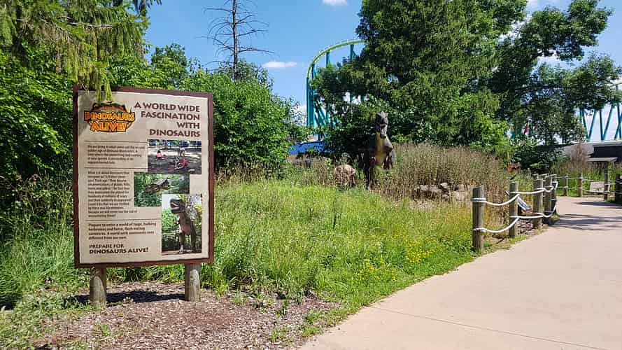 Dinosaurs Alive is a walk through dinosaur exhibit that was rolled out to several Cedar Fair parks.