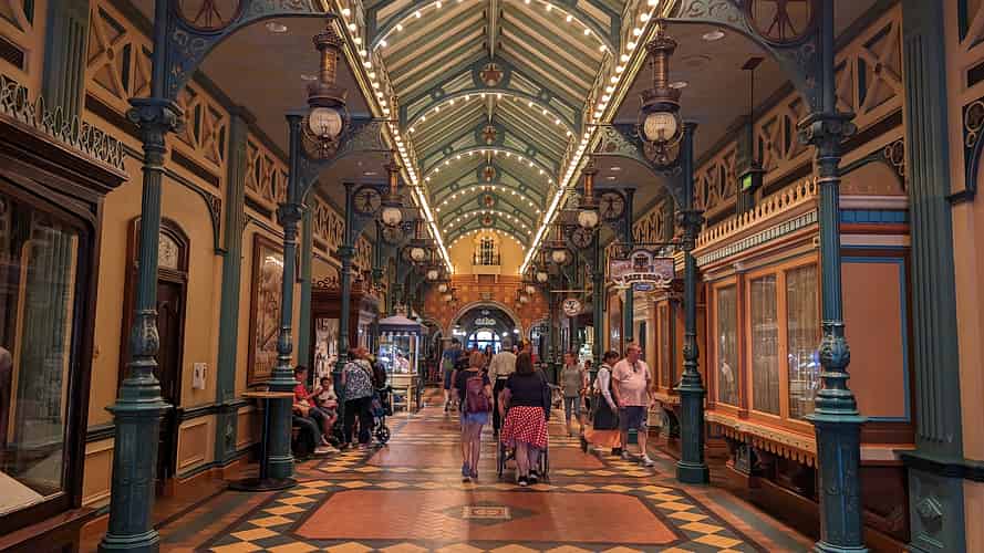 Behind the shops in Main Street runs an enclosed arcade.