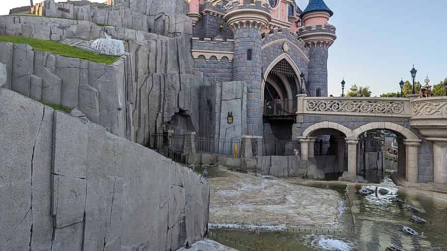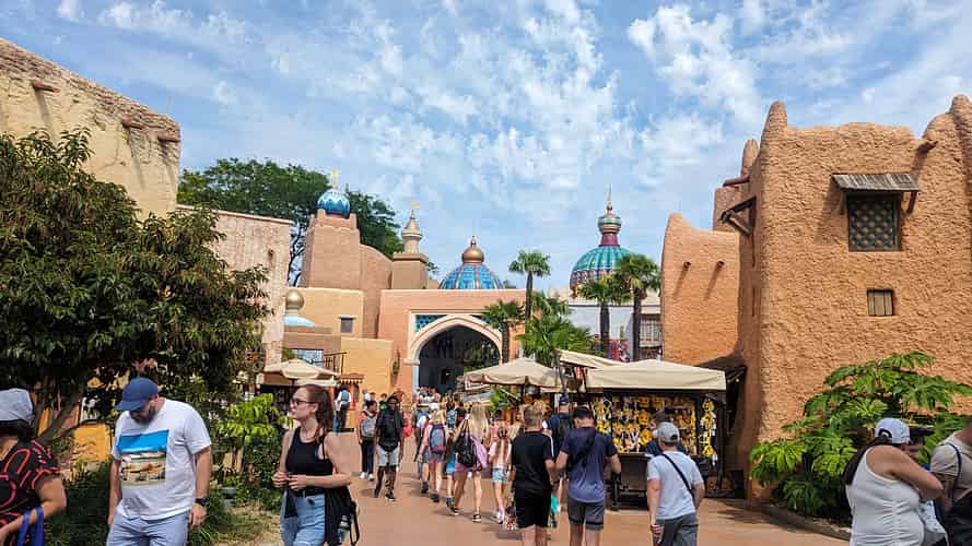 Cobblestone walkways in Fantasyland.