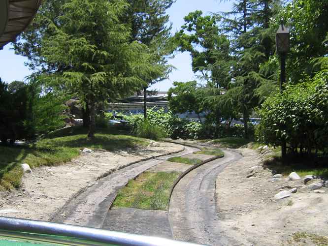The brake run of the ride passes by a minature western town, a relic from a past Disneyland attraction, "Mine Train Through Nature's Wonderland"