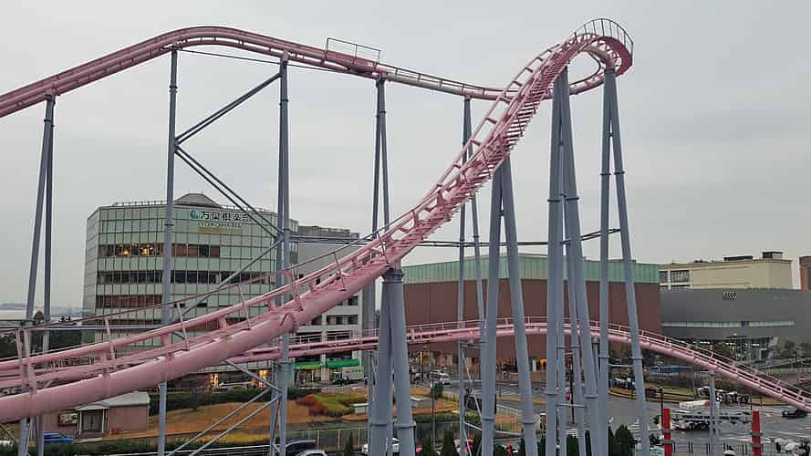 After travelling around Cosmo Clock 21 and doing a little dip, it lines up for the main drop.