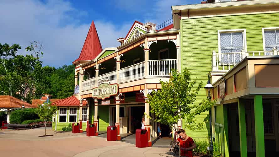 The Dollywood Emporium is the main shop at the park exit.