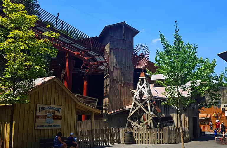 Mystery Mine is a Eurofighter coaster that combines indoor sections with outdoor thrills and tight turns.