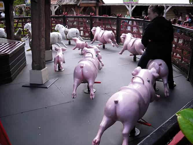 The ride is a unique farmyard themed carousel.