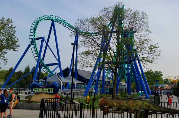 Stinger is a Vekoma Invertigo, essentially the suspended looping version of their Boomerang coaster.