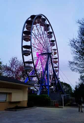 The ferris wheel is located at the top of a ridge, giving good views of most of the park.