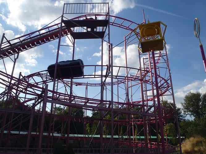 This coaster design can be seen at countless locations around the world. It features a couple of largish drops, followed by a spiral.