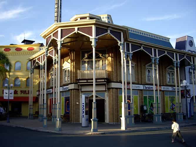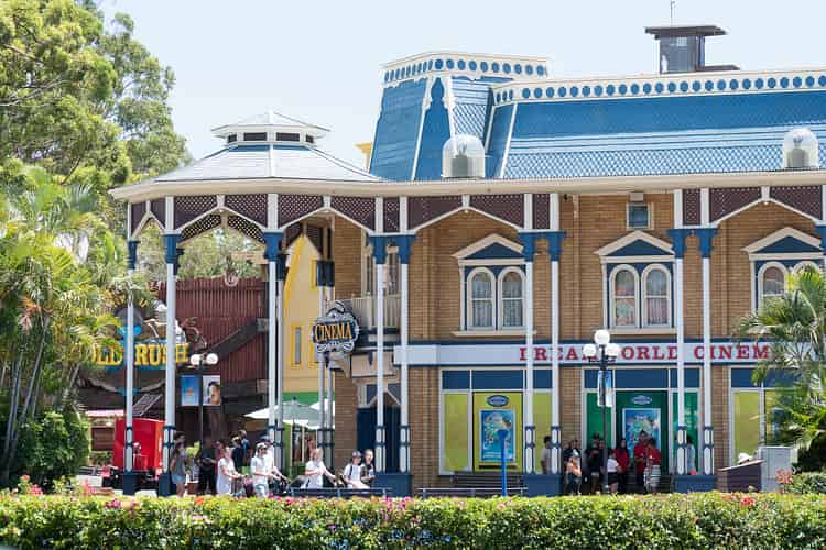 The Dreamworld Imax Theatre, as seen from the park's main entry.