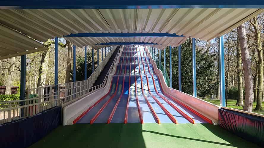A cable tows you up to the top of one of the few hills in the Netherlands.