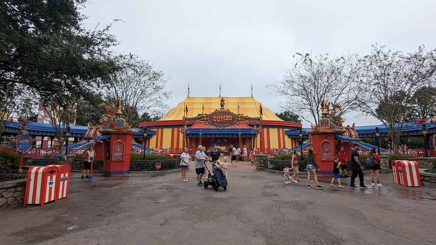 Dumbo the Flying Elephant sits in it's own circus themed area.