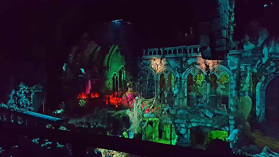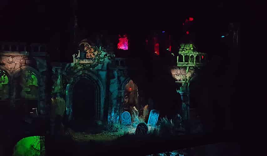 Guests are treated to a few minutes of "the dead rising" with various special effects and animatronics bringing the set to life.