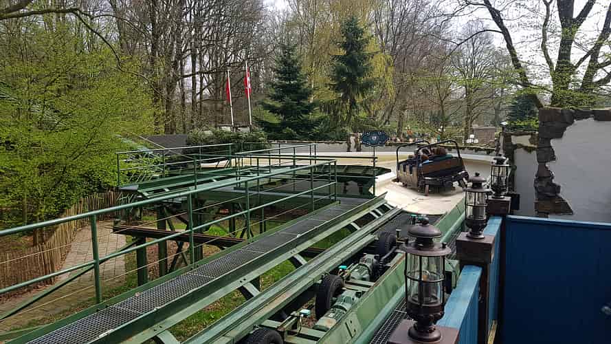 The station is themed to typical Efteling standards. The trains are floorless. To allow boarding, an automatic retracting floor pops up when the train is parked.
