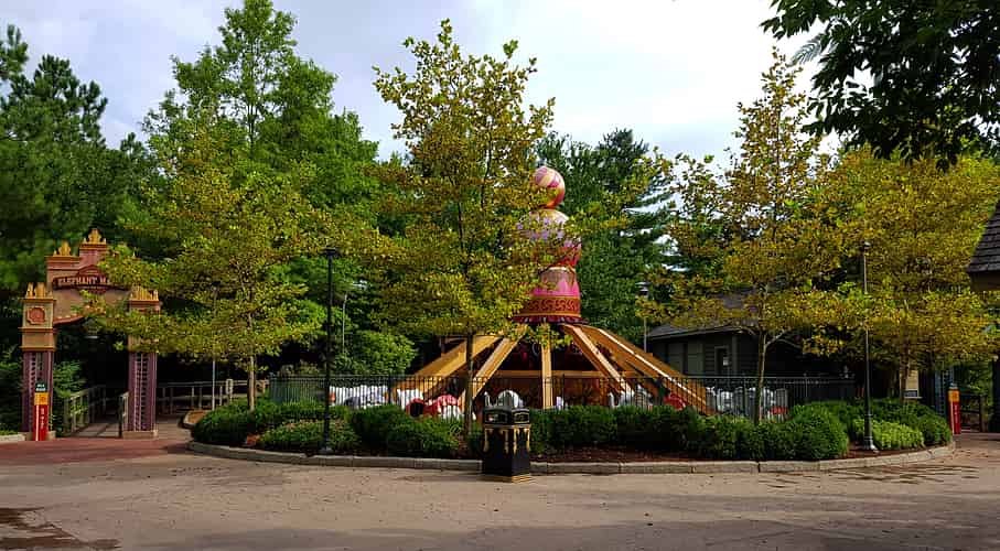 The Elephant March is a "Dumbo" type ride themed to a parade through the exhibition grounds.