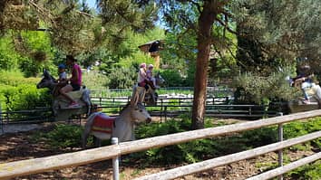 Eselreitbahn has bobbing donkeys running along an electrified rail.