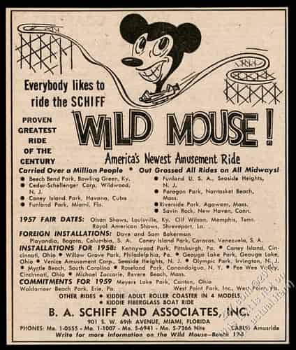 This trade ad for B.A. Schiff puts the original Eureka Mountain Mine Ride's design date somewhere in the mid-1950s