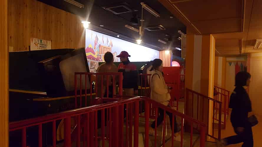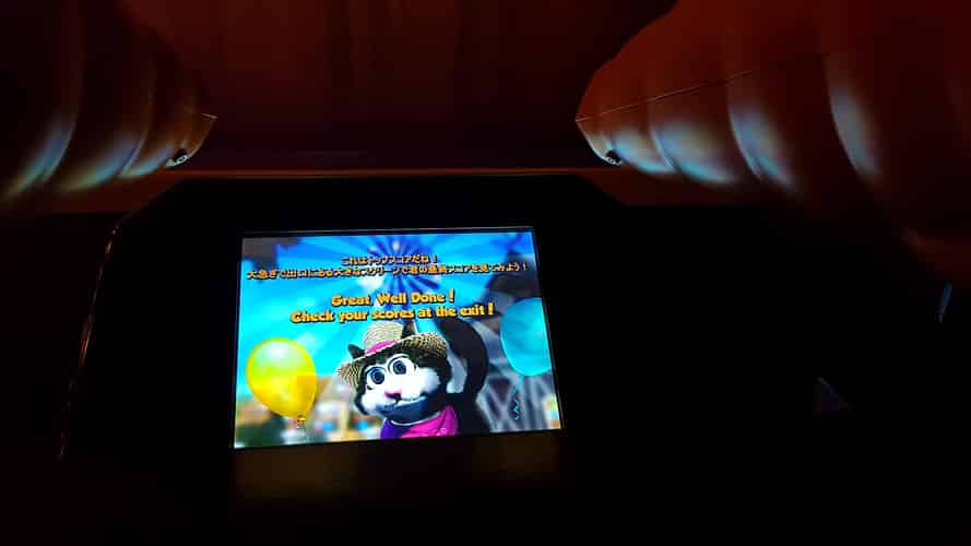 The ride features a number of 3D screens (Though the one seen here is a smaller one explaining the ride instructions)
