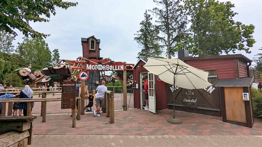 Motorbollen has you riding in sidecar motorbikes that spin around a central hub.