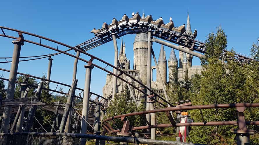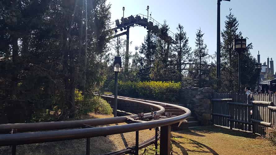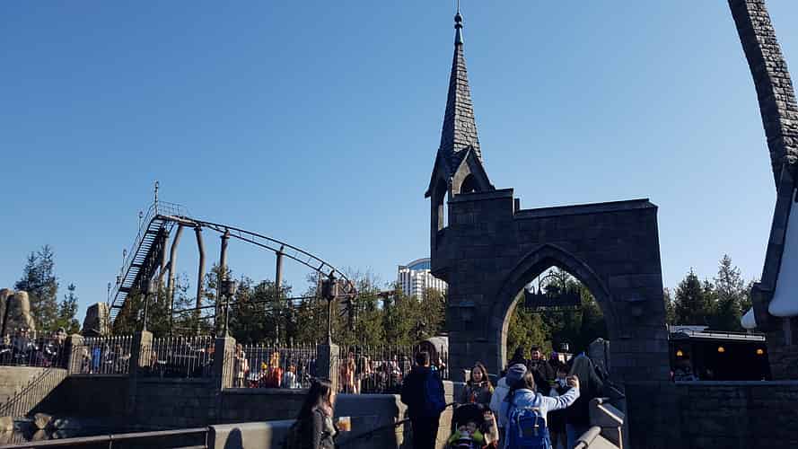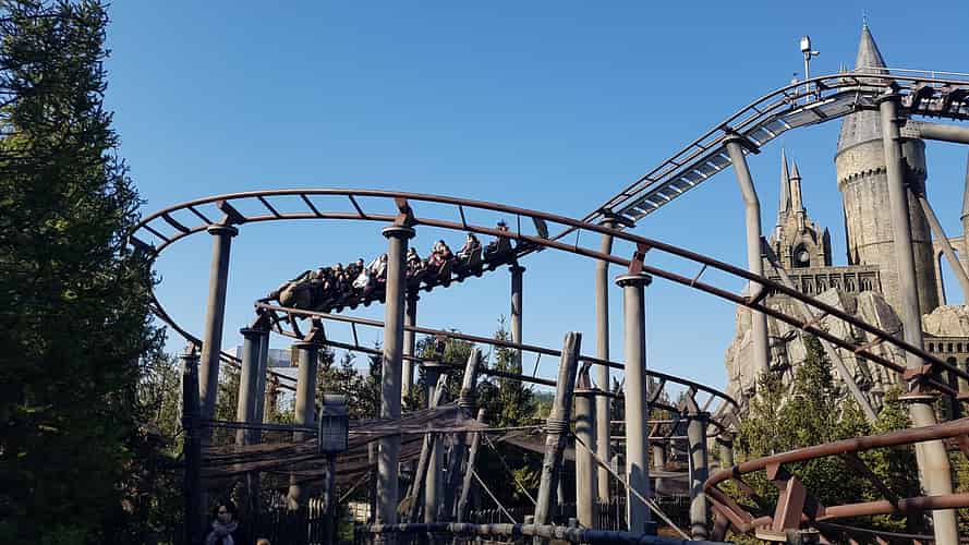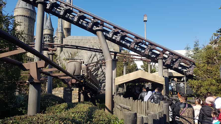 The first version of this coaster was a re-theme of an existing one (Flying Unicorn) that was integrated into the Wizarding World of Harry Potter at Islands of Adventure in Orlando. It was a strange choice to build such a low capacity coaster from scratch when they brought the concept to Japan.