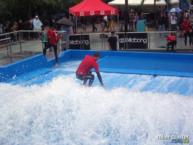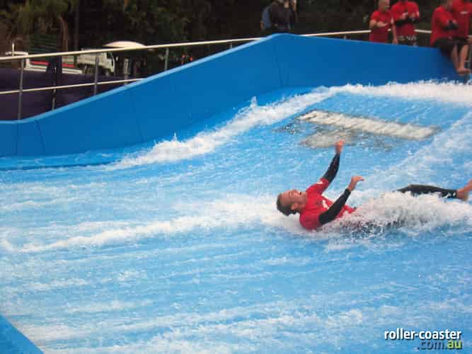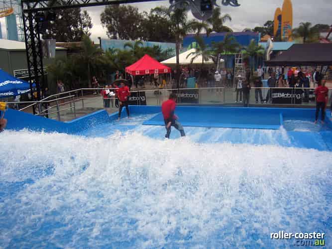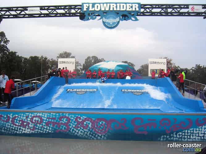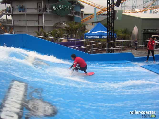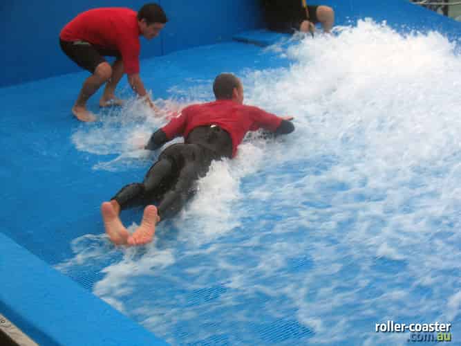 FlowRider is situated next to Cyclone, utilising part of the old Thunderbolt station.