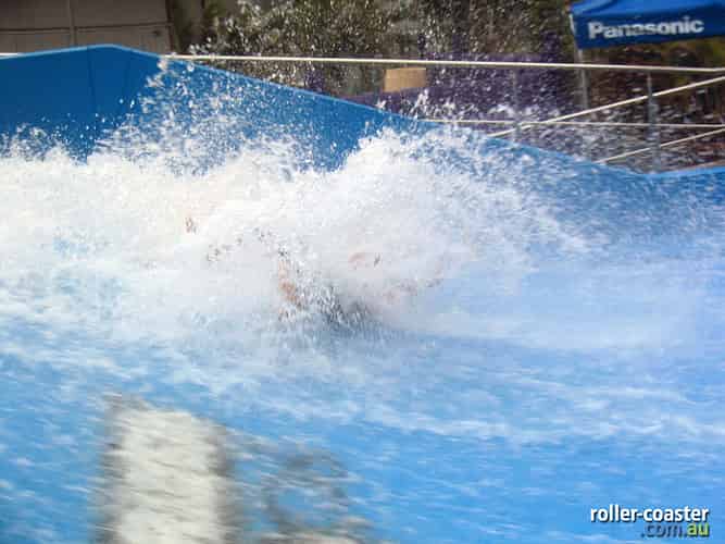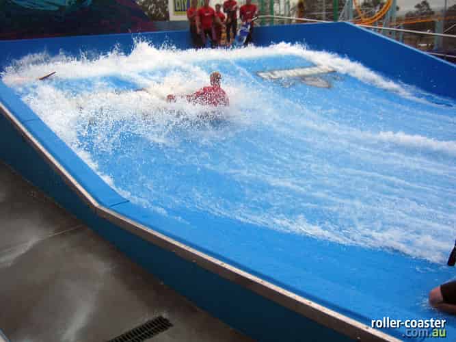 If you do fall off you'll either slide to the bottom or be whisked to the top by the wave where there is a madded mesh flooring. Taking a spill is half the fun!