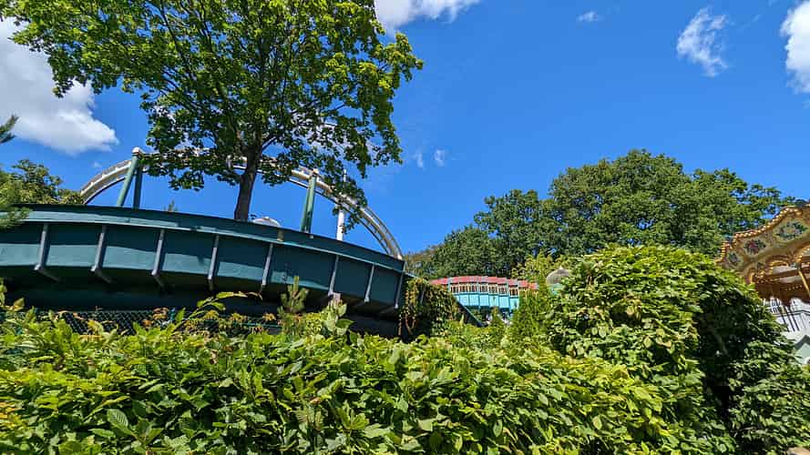 The section at the top of the park completes a lap around the Luna Park zone, passing by a couple of the coasters too.