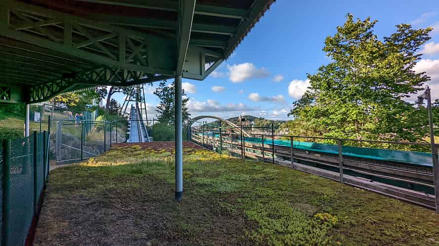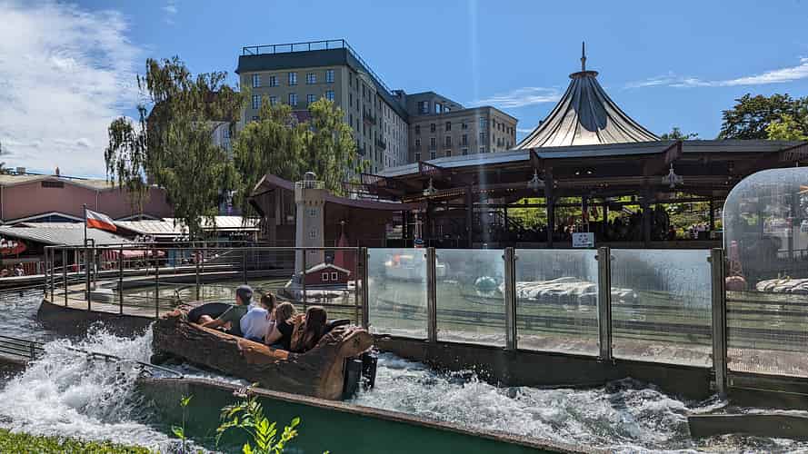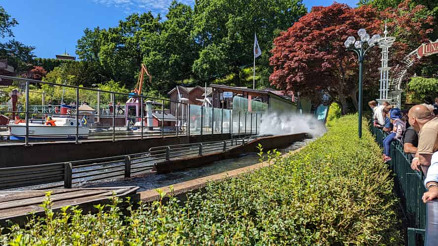 Liseberg is home to a lengthy flume, built on the hillside.