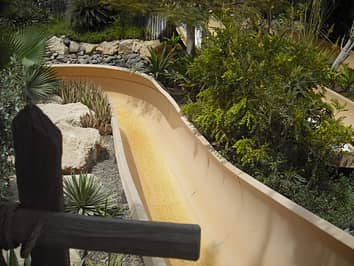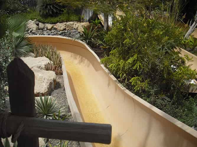 Flying Falls is the longest of the conventional downill raft slides. It tends to be unpopular though, largley because taking it means missing out on a longer run through the other slides.