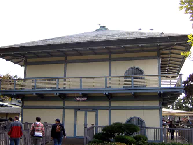 In keeping with the theme of the area, the underwater eel viewing area is housed in this asian style building.