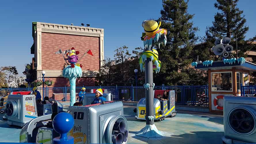 Freeze Ray Sliders is a "demolition derby" style ride, with freely spinning cars moving in a figure 8 motion.