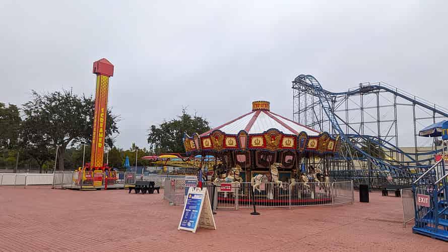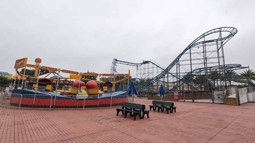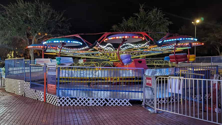 Other flat rides at the park include Screaming Eagles (Flying Scooters) and Headrush 360 (Mini Discovery Revolution)