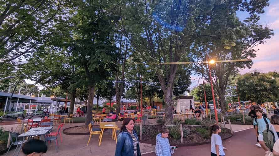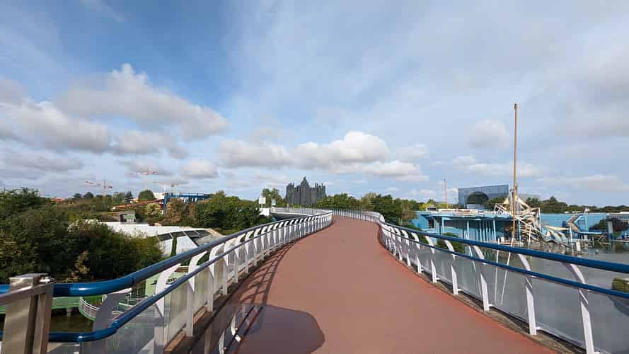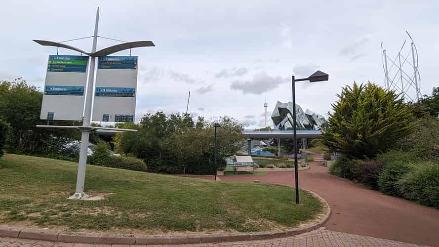 Approaching Futuroscope through the resort and entertainment precinct.