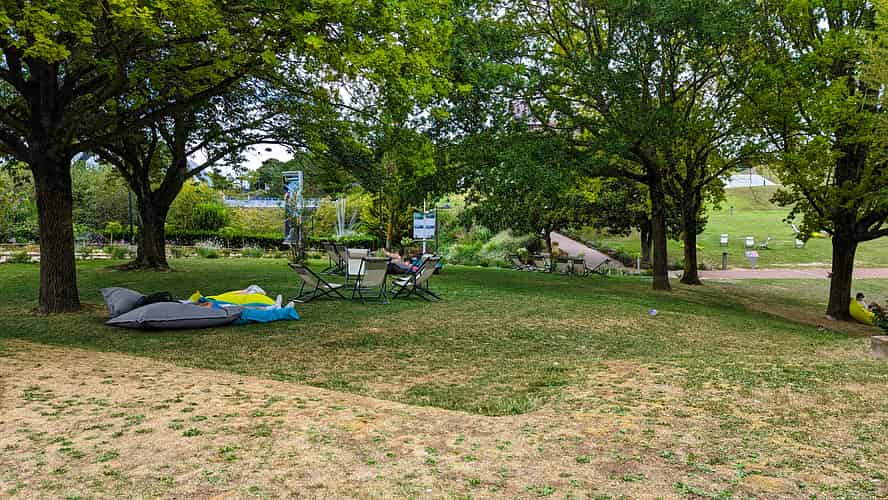 The landscaping is pleasant, with plenty of areas just to relax.