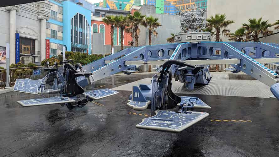 As the ride rotates you can tilt the wings to cause your seat to barrel roll.