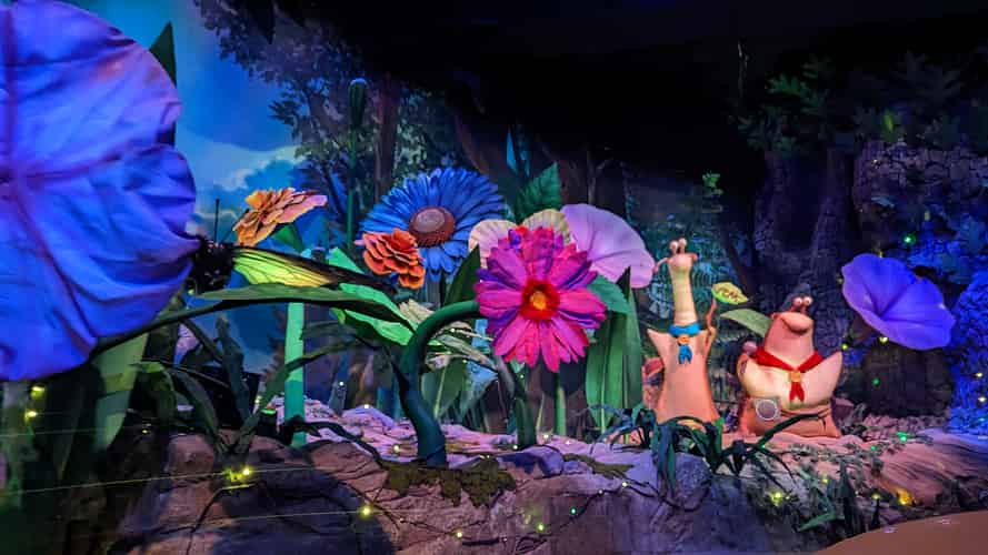 The ride travels through colorful garden scenes, until you are caught in a battle between the Leafmen and the evil Boggans.