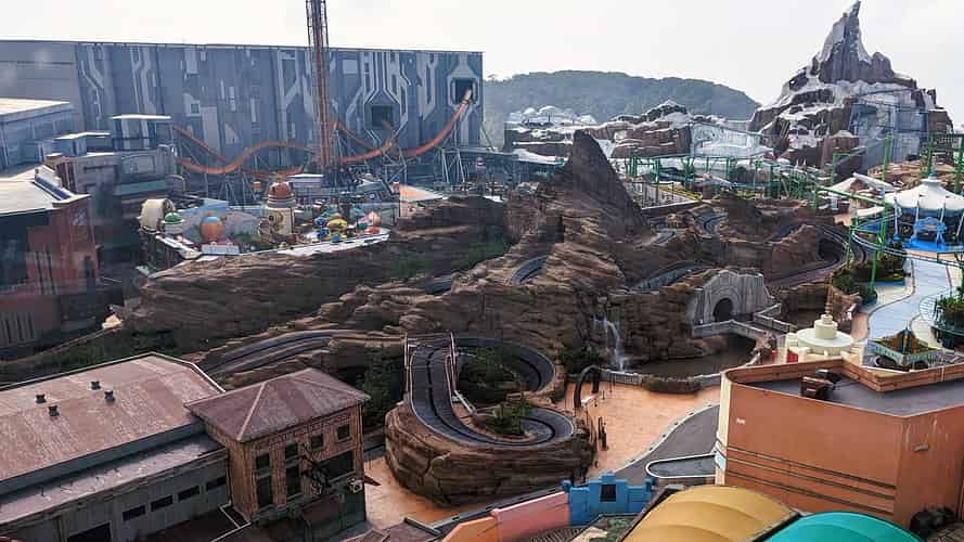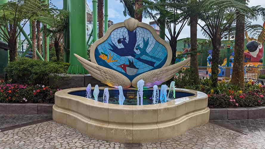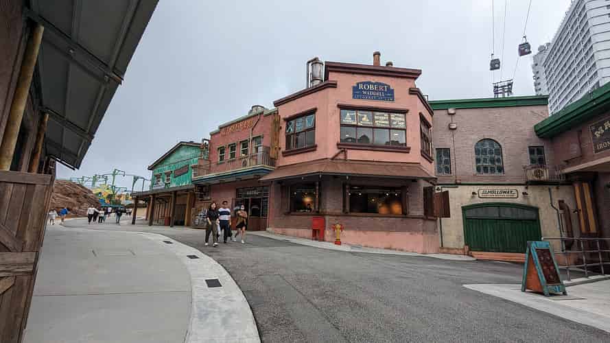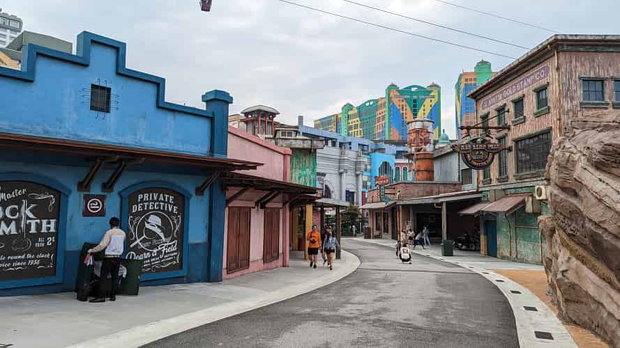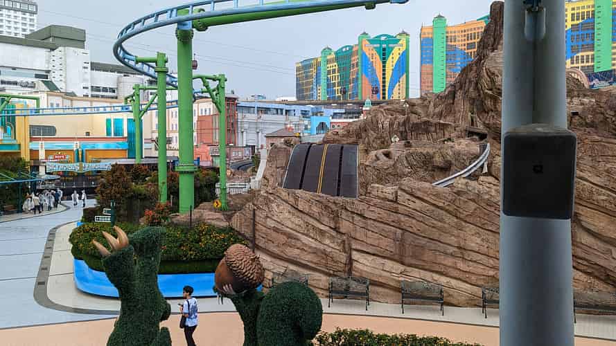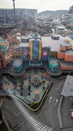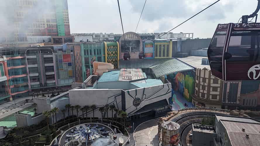 The Awana skyway drops you off at the top level of the SkyAvenue mall, where you make your way through several levels of shops and restaurants to reach the park entrance. The runway on the roof of the Independence Day building as you 'come in to land' is a nice touch.