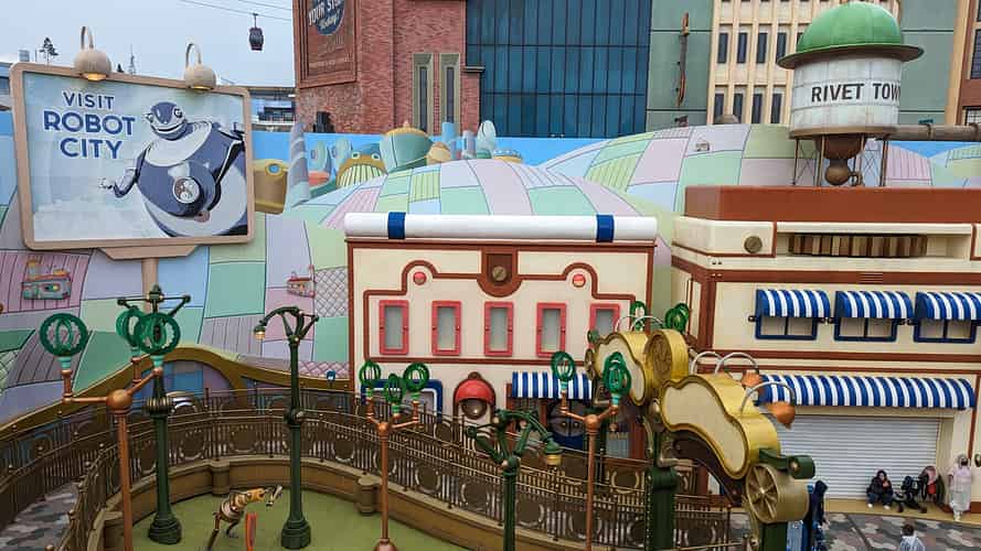 Robots Rivet Town is a small themed zone based around the 2005 film 'Robots'.