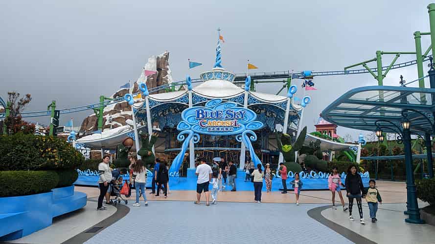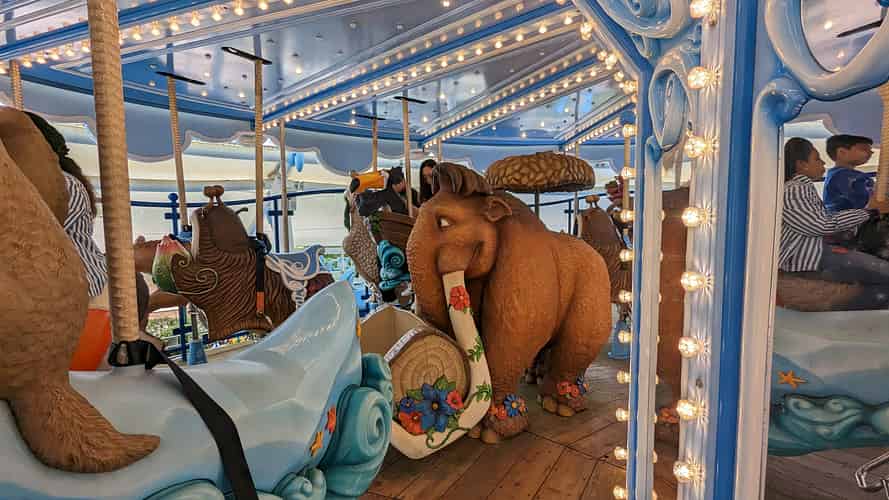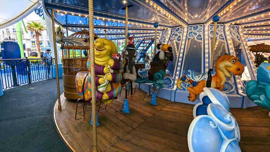 Blue Sky Carousel is a double deck carousel with a mixture of characters from animated films.
