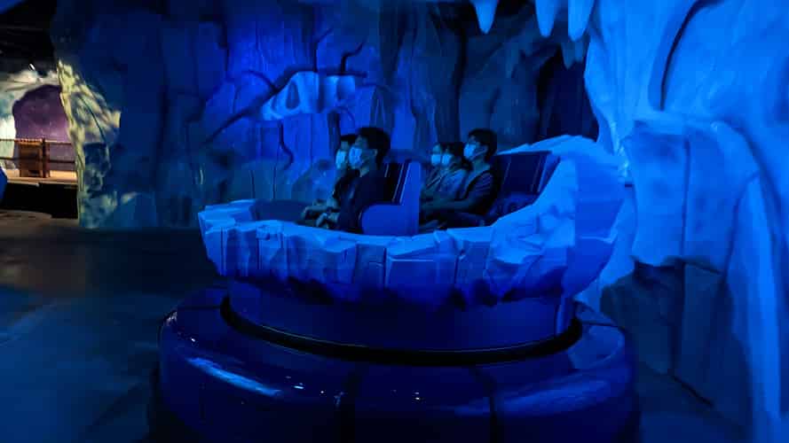 The ride is located below ground level, so a series of escalators bring you back up from the exit.