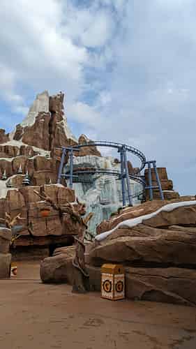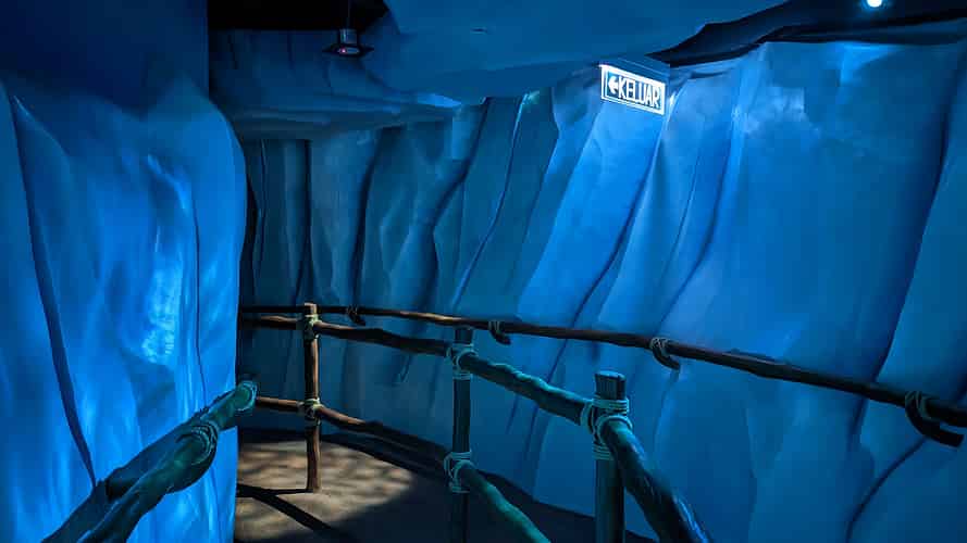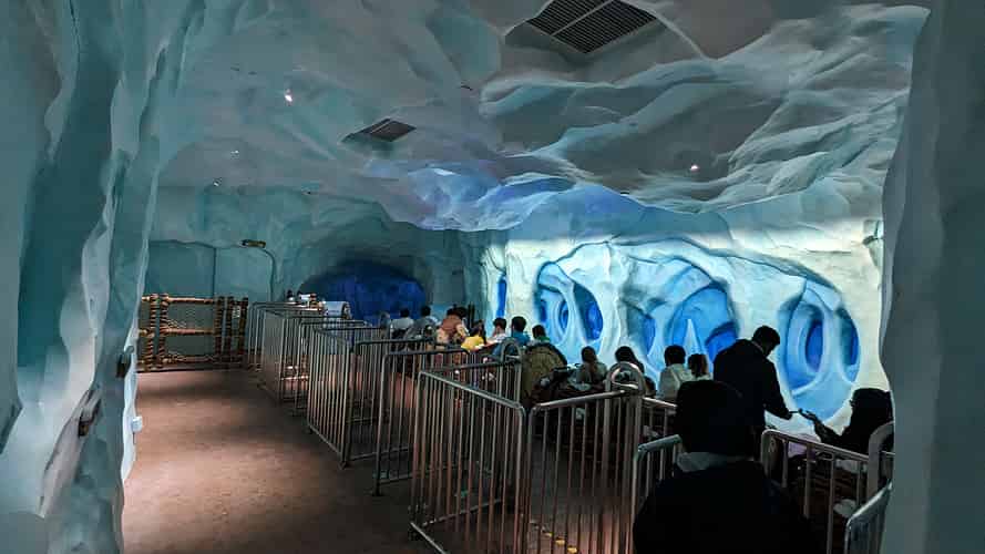 The queue takes you through some icy caverns.
