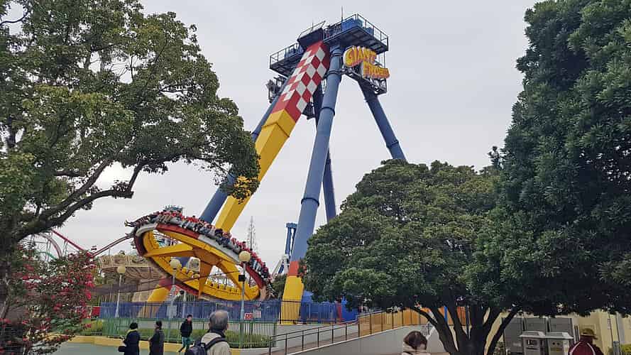 Giant Frisbee, Wave Swinger, Space Shot and Space Shuttle.