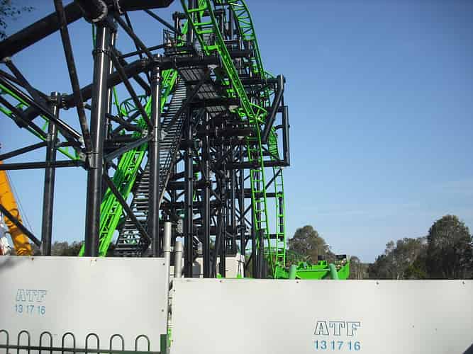 Since our last update the two inversions have gone in, starting with the 'twist and dive' on the left.