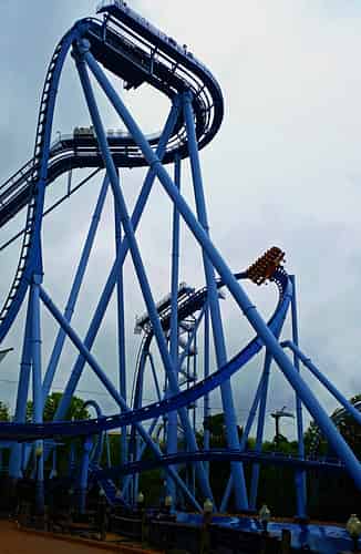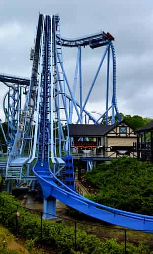 At the top of the lift you glide around a u turn and teeter for a couple of seconds at the top of the vertical drop.
