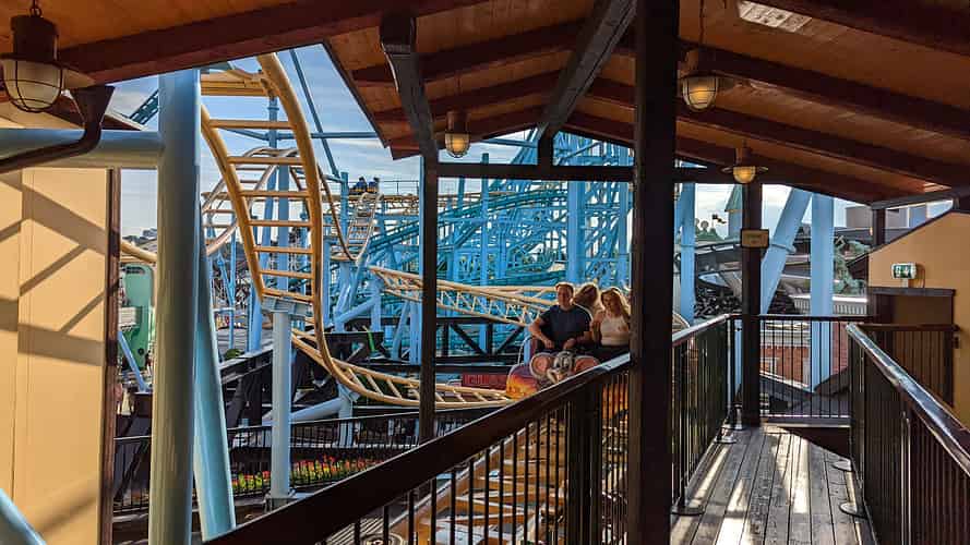 B&M Inverted coasters feature 4 across seating. The fact the park has been able to fit such a large ride into such a compact park is a testament to the skill of the design team.