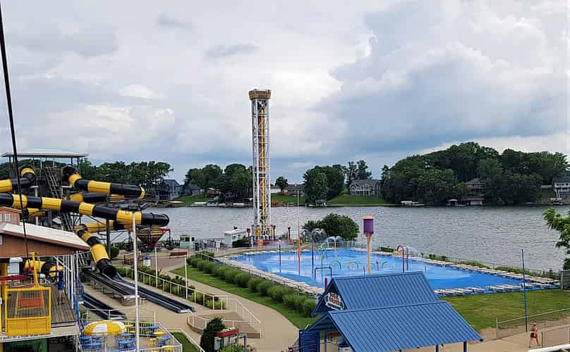 Growler is a spinning ride whilst double shot is a launch tower. Both are located in an odd corner of the water park, separate from other dry rides.