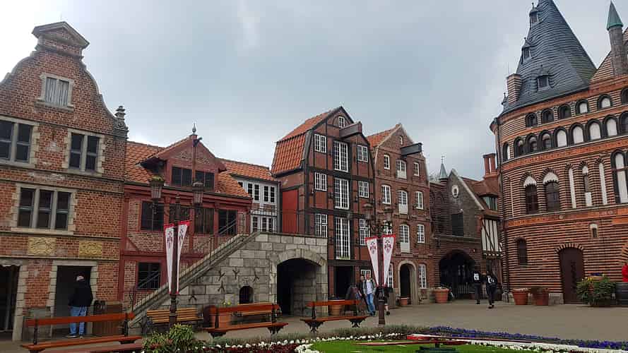"Hanse in Europa" is the name given to the plaza just inside the park entry.