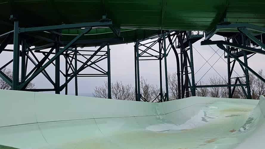 The first part of the slide feels like a water slide, with a fair bit of spinning.