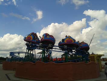 The park has multiple portable "carnival" model family coasters, such as this spinning coaster.